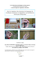 Suivi et analyse des données de baguage de l’avifaune nicheuse et migratrice sur la Réserve Nationale d’Arjuzanx Situé au cœur du département des Landes, la Réserve Nationale de Chasse et de Faune Sauvage d’Arjuzanx s’étend sur 2 626 ha, par ailleurs Zone de protection Spéciale, elle contracte une valeur écologique immense, avec pas moins de 177 espèces recensées, dont 34 présentant un intérêt communautaire remarquable. Depuis 2011 un projet scientifique soutenu par le gestionnaire s’est tourné vers une pratique intensive de l’activité de baguage des oiseaux. Aussi ce présent rapport a pour composante un suivi ainsi qu’une analyse des données de baguage recueillies sur le site depuis le début de l’activité. Cette pratique, basée sur la méthode CMR (Capture-Marquage-Recapture), est encadrée par deux protocoles standardisés au niveau national par le CRBPO (Centre de Recherche par le Baguage des Populations d’Oiseaux) : le protocole Halte migratoire et le protocole STOC capture. L’organisation et le traitement des données de baguage des oiseaux a requis l’utilisation du logiciel Excel, quant à l’analyse des données elle repose en partie sur des tests statistiques effectués à l’aide du logiciel R. Les analyses, effectuées afin de dégager des perspectives de gestion ainsi qu’une meilleure connaissance de la composante des captures, ont porté sur différents jeux de données : sur la population d’oiseaux nicheurs du site, en se basant sur les données de baguage des aires de captures en période de reproduction (confrontation de l’intérêt écologique des écosystèmes, âge ratio) ; de même que sur les populations migratrice grâce aux données recueillies en halte migratoire (lien entre âge et adiposité, sex-ratio, hauteur de capture) ; et enfin plus généralement sur des données liées aux proportions de capture ainsi qu’aux contrôles des oiseaux sur le site. En dernier lieu il est important de souligner que ce travail s’inscrit dans une continuité puisque l’intérêt futur est d’étayer les analyses actuelles. -