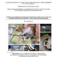 - Tentative de sauvegarde d'une population d'écrevisses à pattes blanches face à la remontée d'écrevisses de Californie : mise en place de seuils bloquants