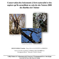 européen. Ils sont aussi un support d’accueil pour de nombreuses espèces d’intérêt communautaire. Ces habitats sont de plus en plus vulnérables. Afin de les conserver et/ou de les restaurer, Natura 2000 dispose de plusieurs outils, dont les contrats Natura 2000. Cette présente étude tente de mettre en place trois contrats F12i « Dispositif favorisant le bois sénescent » sur les communes de Préchacq les bains (40), St Laurent-de-Gosse (40) et Orist (40). Pour cela, des diagnostics préalables aux contrats ont été rédigés sur chacune des zones à contractualiser. Des protocoles ont été mis en place pour l’identification des arbres sénescents, les rapaces diurnes, les pics et la Cistude d’Europe. Les cortèges d’espèces retrouvés sur les sites, le travail de cartographie et le respect des critères d’éligibilité ont permis de justifier leurs mises en contrat. Ils doivent ensuite être validés par les services de l’Etat et l’Europe, les protégeant ainsi de toute activité sylvicole pendant 30 ans. - Discipline principale