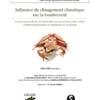 - Influence du changement climatique sur la biodiversité. Cas de la grenouille des Pyrénées (Rana pyrenaica Serra-Cobo, 1993) : évolution diachronique de l’abondance de ses têtards
