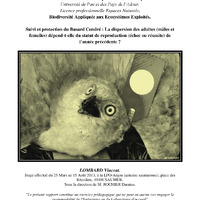 - Suivi et protection du Busard Cendré : la dispersion des adultes (mâles et femelles) dépend-t-elle du statut de reproduction (échec ou réussite) de l’année précédente ?
