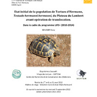 - Etat initial de la population de Tortues d’Hermann (Testudo hermanni hermanni), du Plateau du Lambert avant opération de translocation. Dans le cadre du programme LIFE+ (2010-14)
