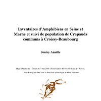 - Inventaires d’Amphibiens en Seine et Marne et suivi de population de Crapauds communs à Croissy-Beaubourg