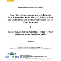 - Analysis of the environmental legislation in Brazil, Argentina, India, Malaysia, Russia, China and South Africa and the implications for Shields Environmental & Researching a fully sustainable solution for heat sinks containing beryllium oxide