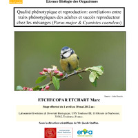 - Qualité phénotypique et reproduction : corrélations entre traits phénotypiques des adultes et succès reproducteur chez les mésanges (Parus major & Cyanistes caeruleus)
